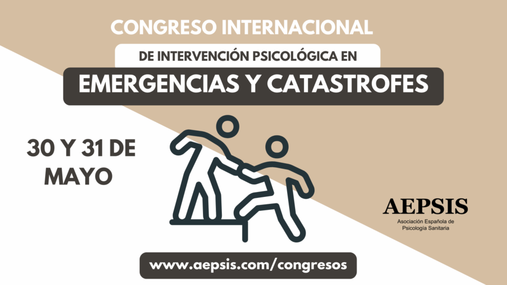 La Asociación Española de Psicología Sanitaria, (AEPSIS) organiza el Congreso Internacional de Intervención Psicológica en Emergencias y Catástrofes, que se celebrará los días 30 y 31 de mayo, en formato online y presencial.