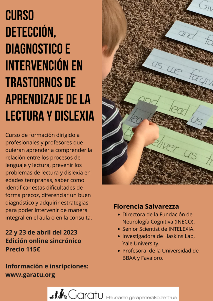Este curso tiene como eje la detección y seguimiento de los/as niños/as con trastornos del aprendizaje en la lectura, tanto en la escuela como en el ámbito clínico.