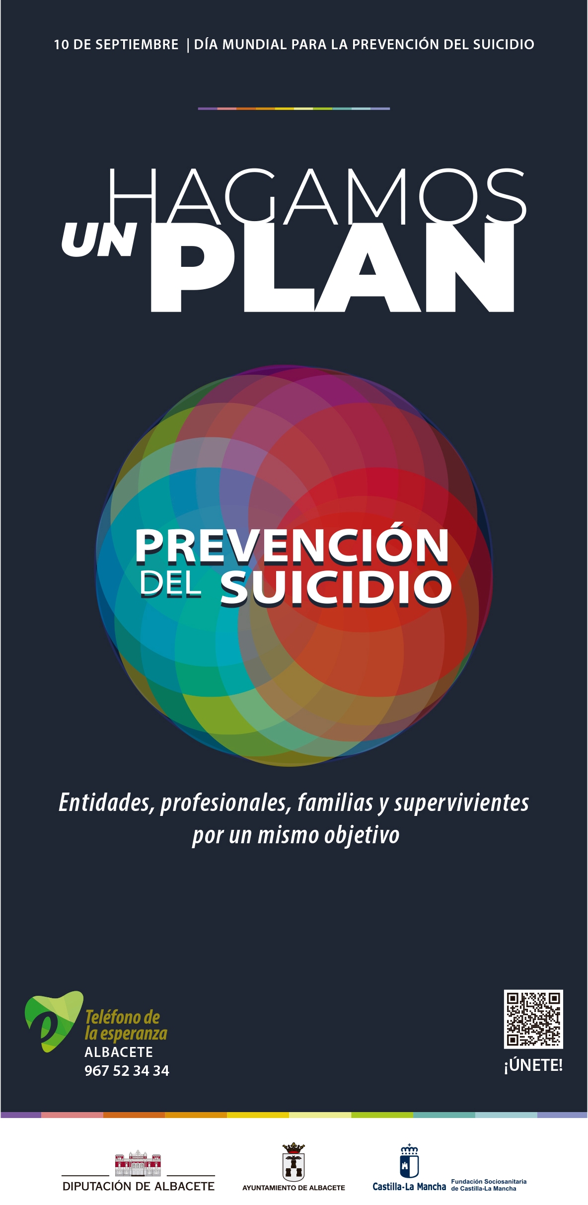Tal y como se acordó en la primera reunión de la Mesa para la Prevención del Suicidio de Albacete, el próximo sábado, 10 de septiembre, a las 20:00 horas, en la albaceteña Plaza del Altozano, tendrá lugar un acto para conmemorar el Día Mundial para la Prevención del Suicidio.