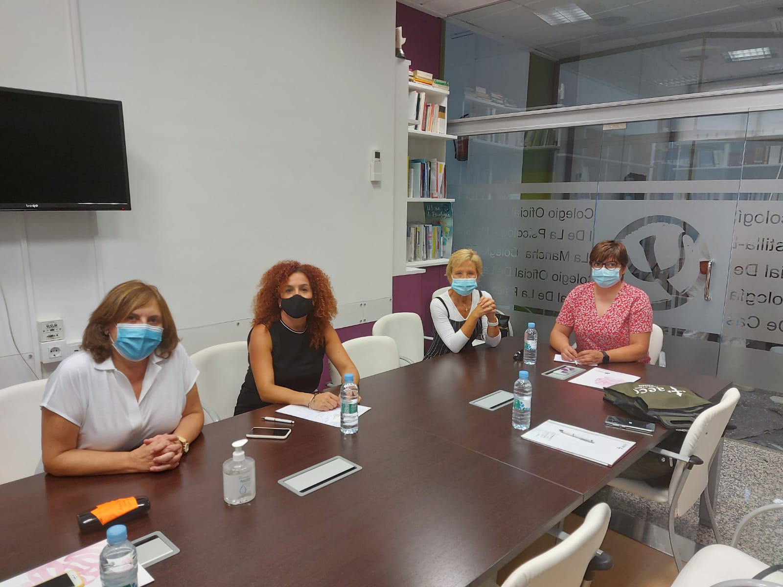 La pasada semana tuvo lugar un encuentro de trabajo en el que estuvieron presentes la Coordinadora regional de la AECC, María Victoria Fernández; la Gerente de la Sede Provincial de Albacete, Rosa Díaz; la Decana del COPCLM, María Dolores Gómez Castillo; y la Secretaria del colegio, María del Mar Aguilar.