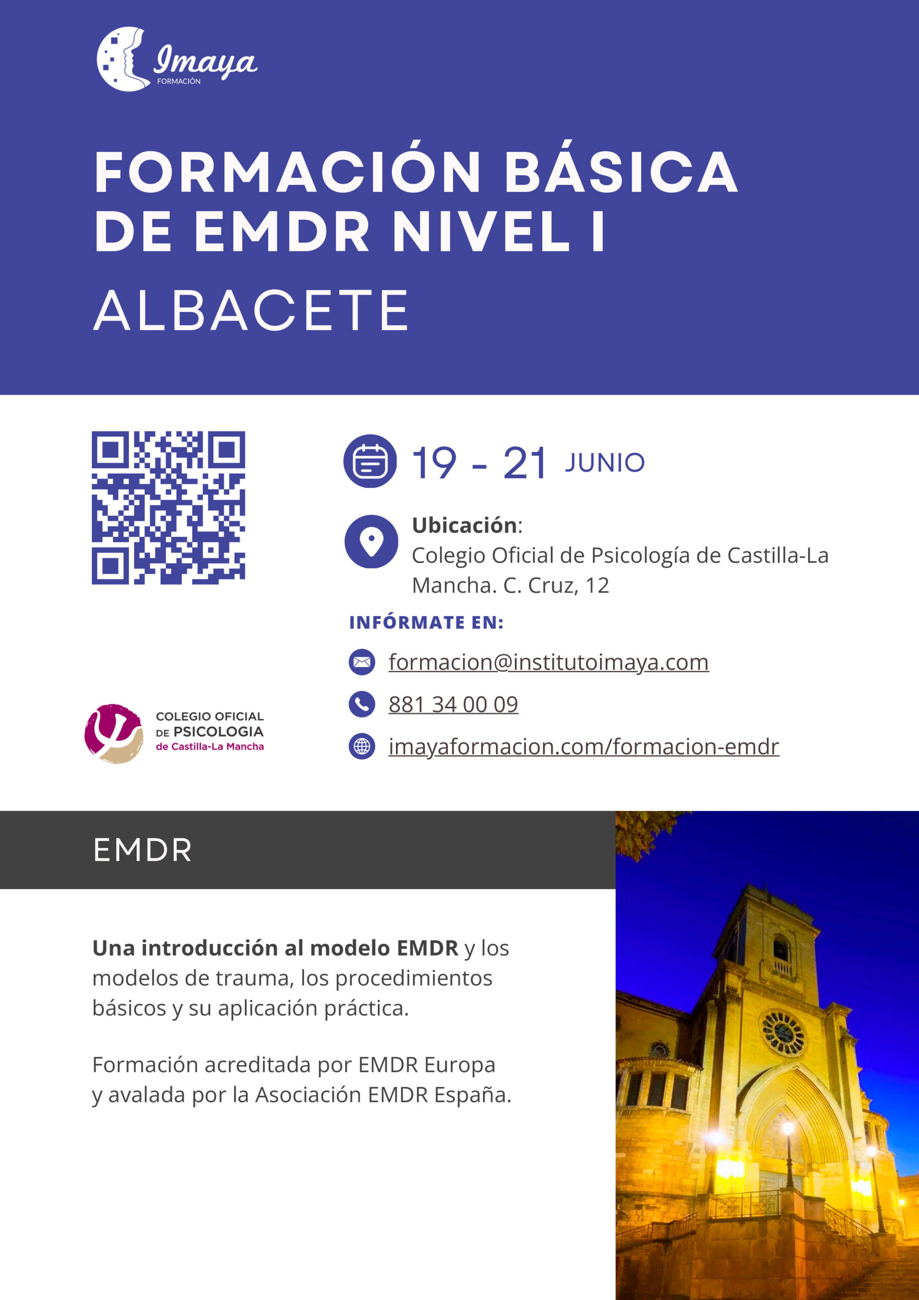 Entre los días 19 y 21 de junio de 2026 tendrá lugar un curso de formación básica de EMDR, nivel I, impartido por Mabel Medina y en el que colabora el Colegio Oficial de Psicología de Castilla-La Mancha.