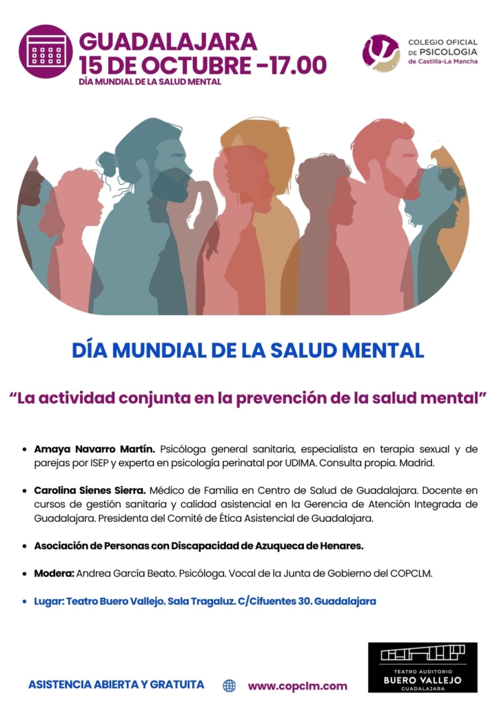 Enmarcada en las actividades organizadas por el COPCLM con motivo del Día Mundial de la Salud Mental, la Sala Tragaluz del Teatro-Auditorio Buero Vallejo, en Guadalajara, acoge mañana la conferencia “La actividad conjunta en la prevención de la Salud Mental”.