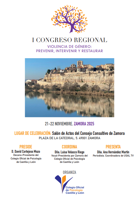 El Colegio Oficial de Psicología de Castilla y León tiene programada la realización de un Congreso presencial y digital en directo para los días los días 21 y 22 de noviembre en Zamora, sobre Violencia de Género.