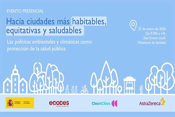 ECODES, enmarcado en la campaña europea Clean Cities, con AstraZeneca y en colaboración con el Ministerio de Sanidad, organiza un encuentro centrado en la importancia de alinear las políticas ambientales y climáticas con la protección de la salud pública.