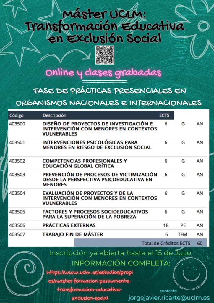 La Universidad de Castilla-La Mancha convoca el Máster Universitario “Transformación Educativa en Exclusión Social” con fase de prácticas presenciales en organismos nacionales e internacionales.