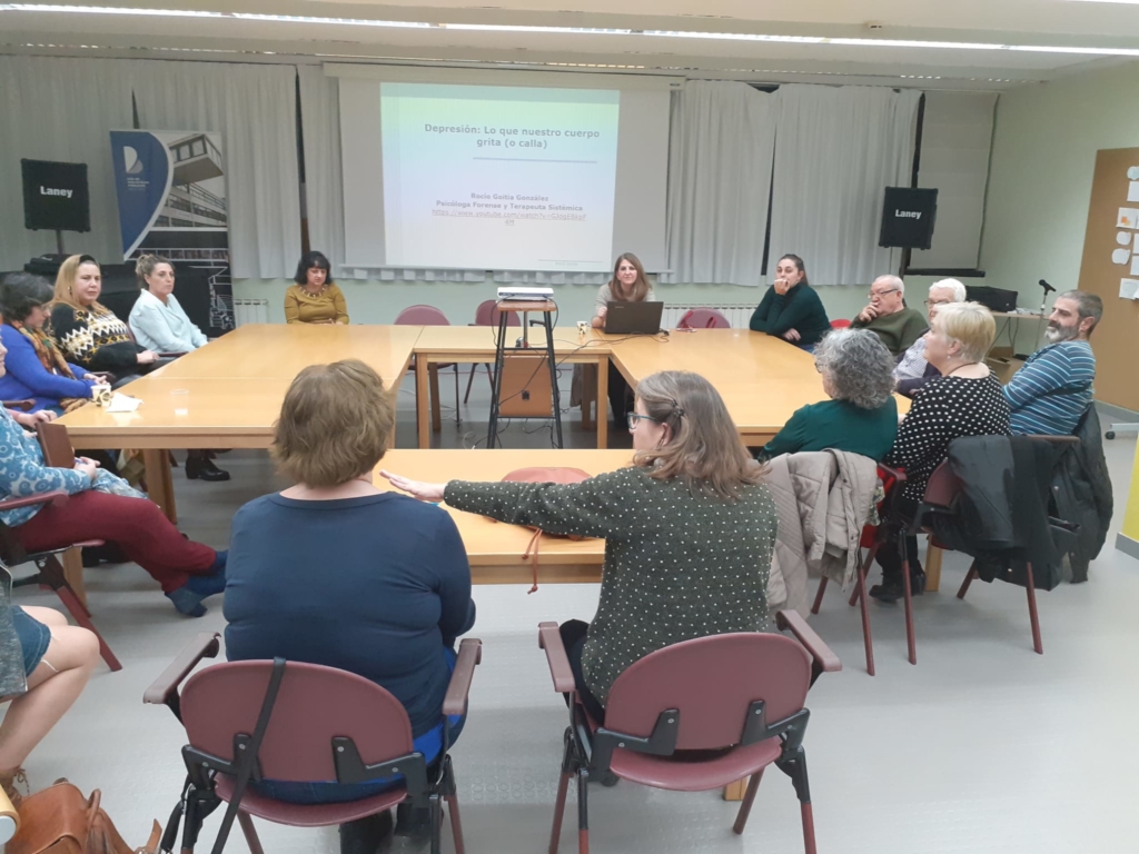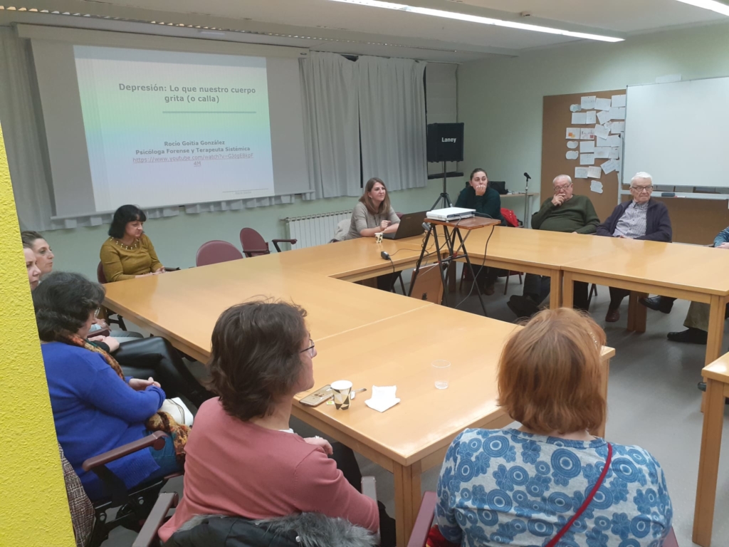 El tema versó sobre “Depresión: lo que nuestro cuerpo grita (o calla)” y fue desarrollado por la Vocal del COPCLM Rocío Goitia, que de forma expositiva explicó, desde el punto de vista psicosomático, cómo funciona este problema tan prevalente en nuestra sociedad.